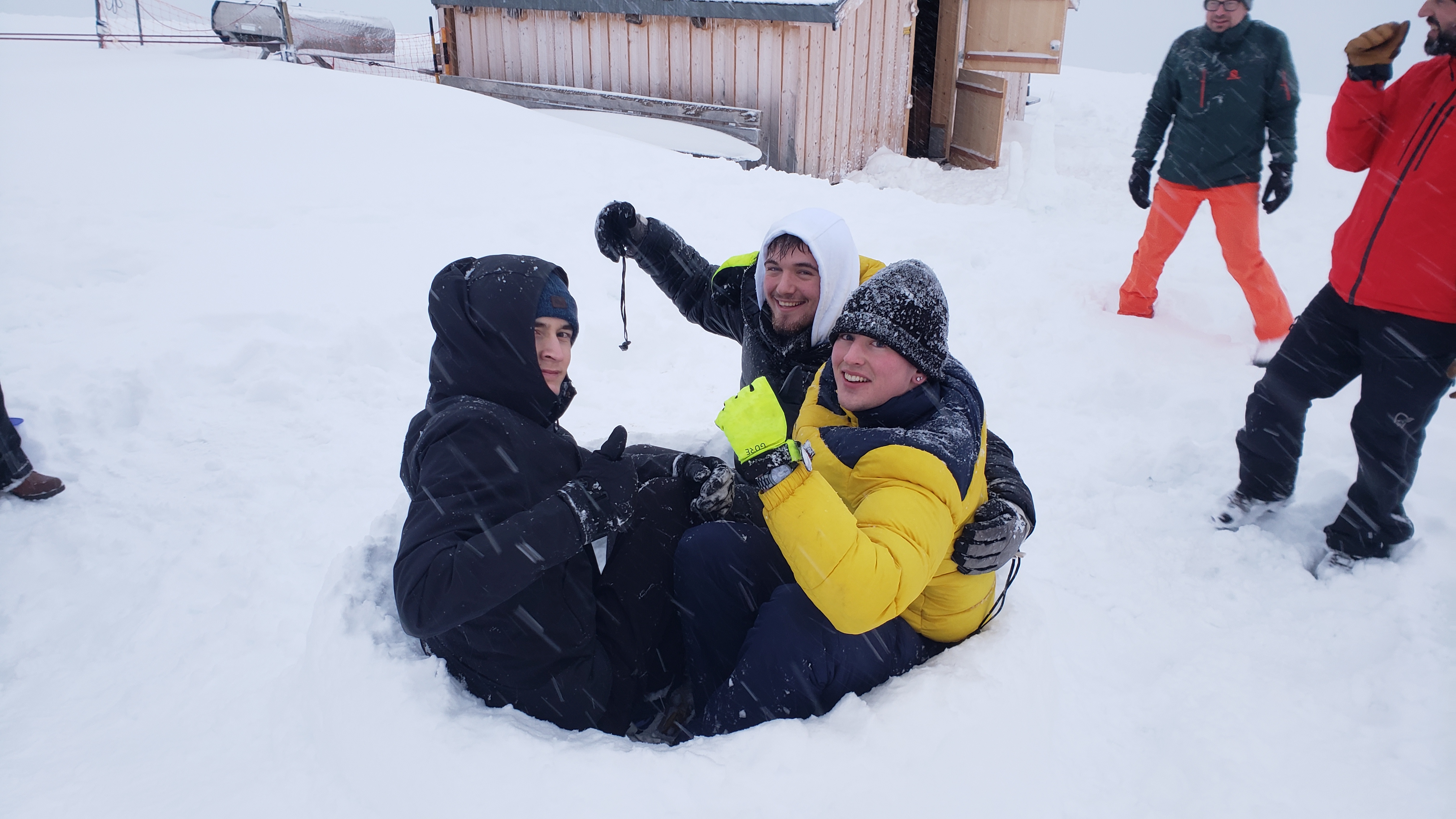 Fisnik med sine nederlandske og danske team-medlemmer i sin snøjacuzi, vant Snowdown!
